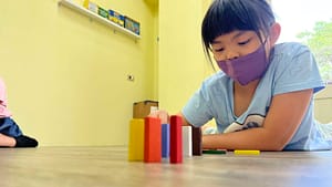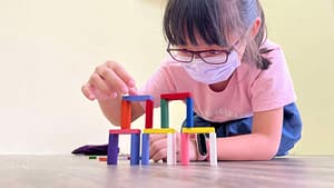 骨牌排列需要極高的穩定度,孩子在過程中學會靜心與堅持。