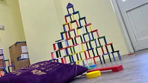 我們的課程設計涵蓋大班到國小六年級。針對不同年齡層,我們會調整骨牌的大小、排列難度以及機關的複雜度。低年級偏重圖樣與基礎穩定度,高年級則會加入更多物理原理與大型路線規劃。