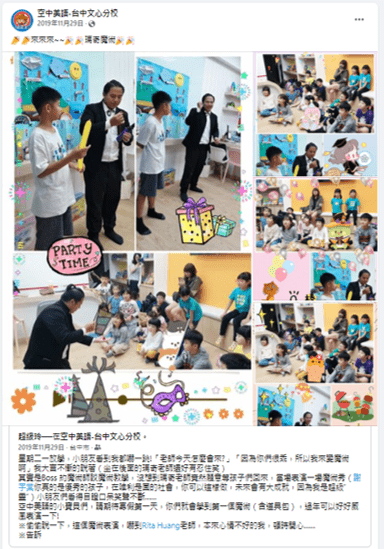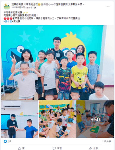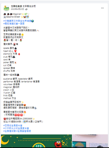 家長很常比價,我們只選擇好的課程,某一次附近補習班的家長小孩,與我們家的家長與小孩碰面,同樣是魔術課程,我們家的孩子上的魔術課程有禮盒、提袋,另外一家的就是一個塑膠袋裝著一些零散的教具,家長回饋是覺得很有面子,所以會願意選擇更好的內容,給孩子更好的。