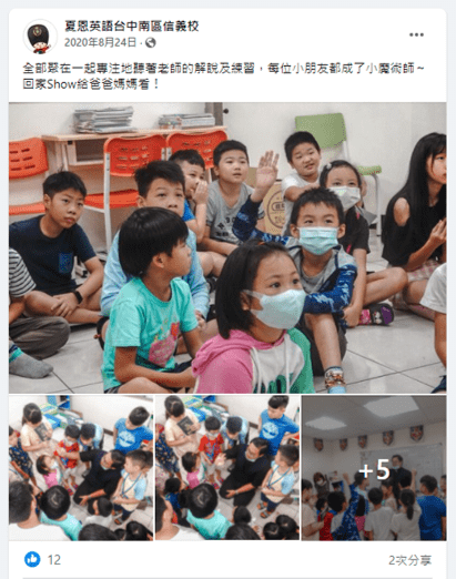在上課前,我們某次帶小朋友去附近公園野餐,請MagicArtist&King's Talent來幫我們做一個招生表演,孩子反應非常熱烈,報名狀況也很好,在課程中間有時候會有些上課小問題,柏廷也都會很及時的協助處理,課程後授課老師也會額外準備一些小禮物,送給上課踴躍的孩子。